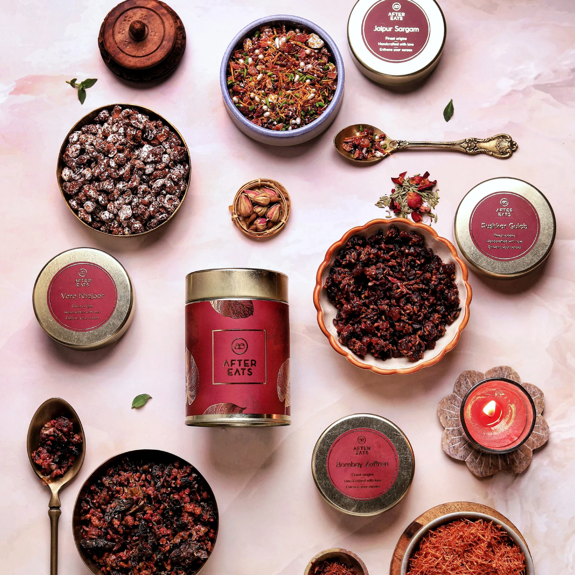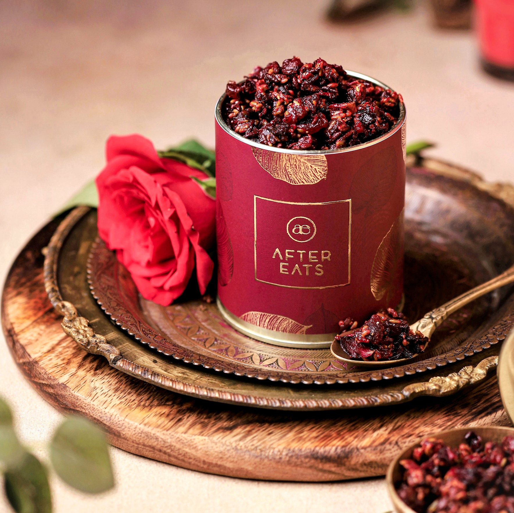 Immerse yourself in the ethereal essence of After Eats' Pushkar Gulab, a sugar-free mouth freshener that captures the enchanting beauty of fragrant Indian roses. Step into the mystical realm of Pushkar, the city of provenance, where ancient traditions and floral allure converge, and allow this remarkable creation to transport you to a realm of sensory delight.