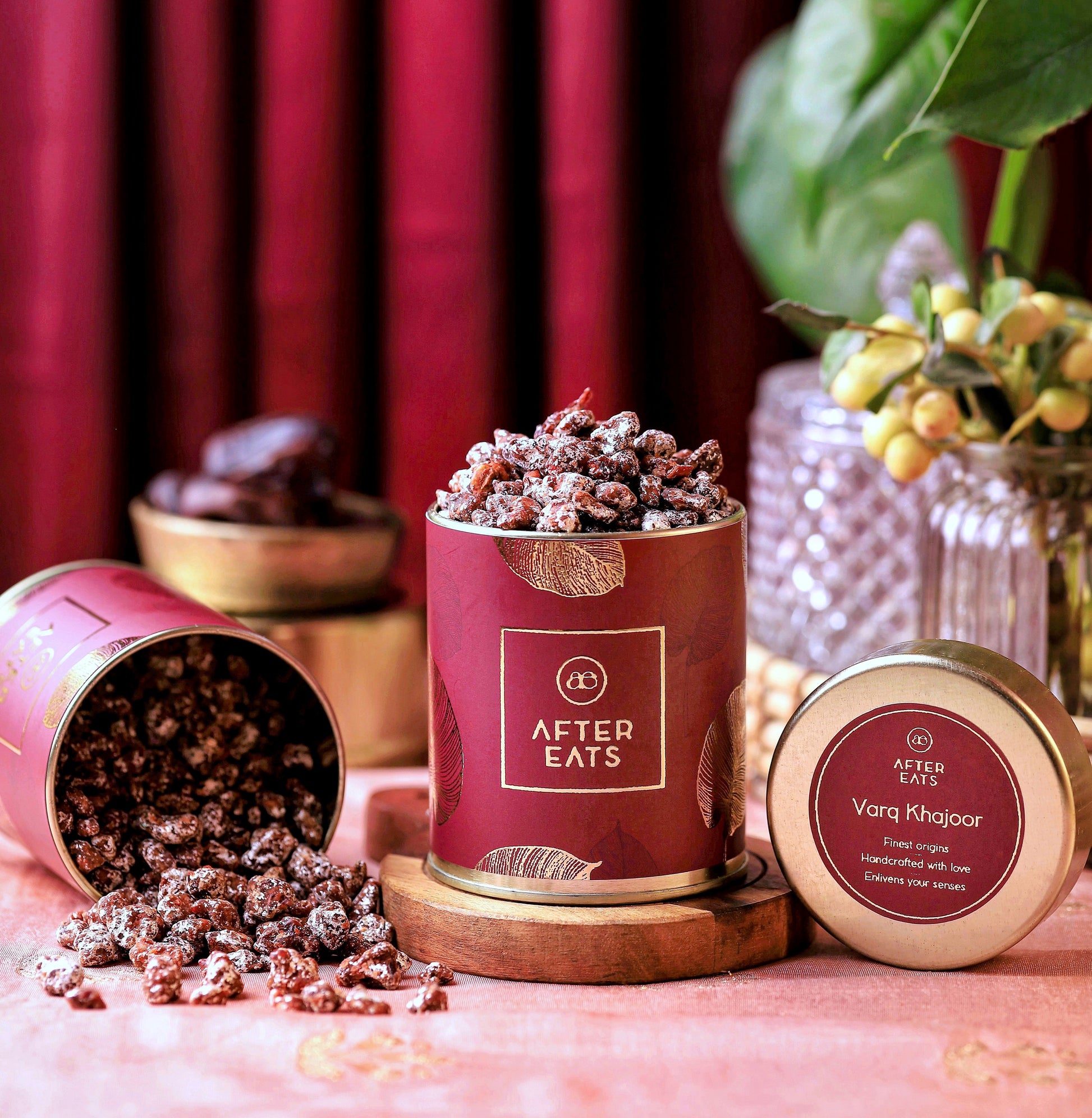 Prepare to embark on a journey of pure elegance and sensory delight with After Eats' Varq Khajoor, a sugar-free mouth freshener that combines the allure of Arabian dry dates with a touch of opulence. This exquisite creation unveils a tantalising experience, where the sweetness of succulent dates dances in harmony with the shimmering embrace of real silver leaves, creating a symphony of flavour and sophistication.
