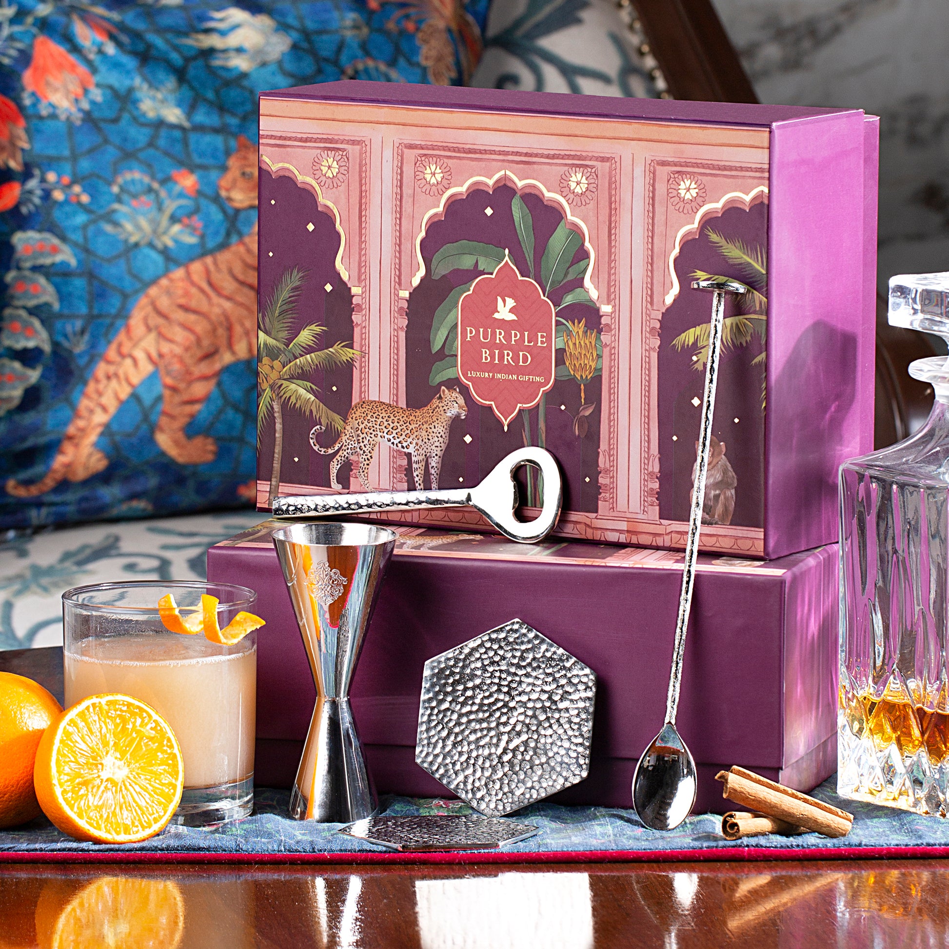 The perfect starter gift for those who brighten the room with their presence and are a symbol of 'good times'. The Chandee curation is a celebration of Indian brass handicrafts in a silver plated finish, perfect for an intimate gathering, a grand party and everything else in between. Get the party started with the Purple Bird silver plated bottle opener to pop bottled beverages. The silver plated peg measurer is a statement piece in itself with a dual measure of 30 and 60 ml per your preference. Stir up those cocktails or mocktails with the silver plated stirrer and rest the drinks on the pair of two silver plated coasters. The perfect gift for those who are a 'bit extra'.
