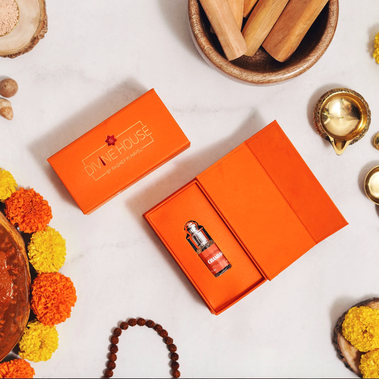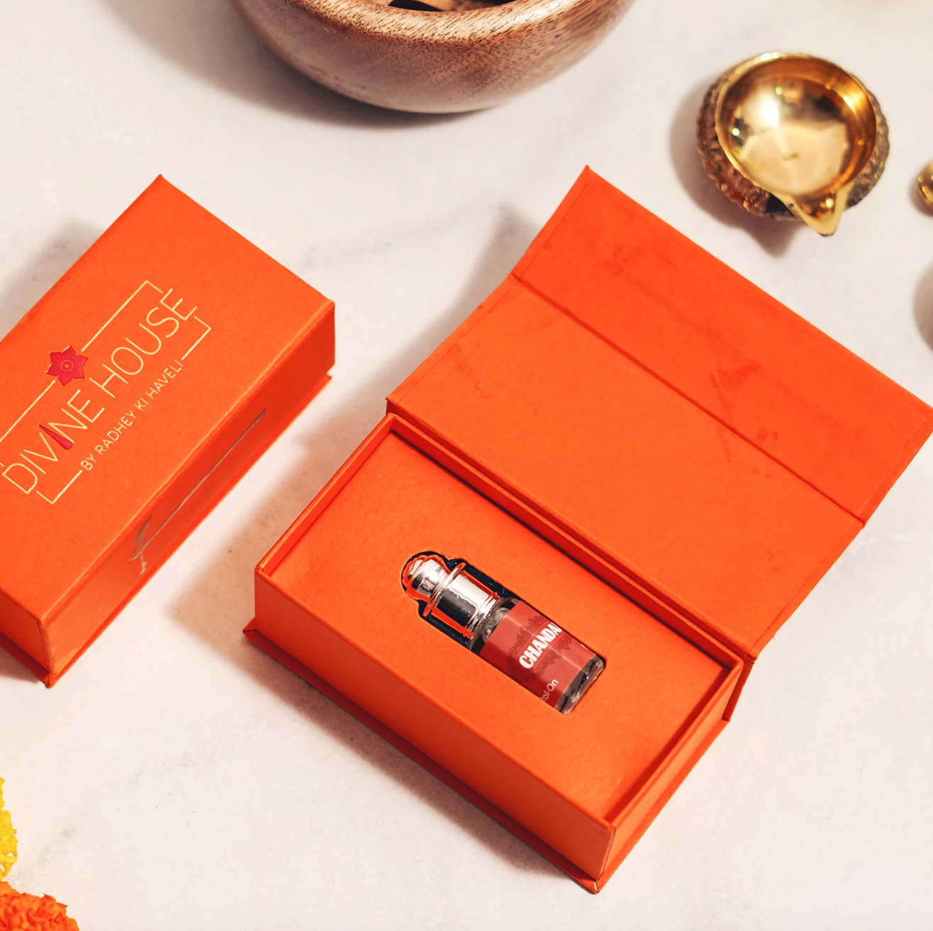 Fragrance Information:Our Divine House Chandan Attar is extracted from the heart of the sandalwood tree, it possesses a rich and soothing fragrance. Chandan attar, also known as sandalwood attar or sandalwood essential oil is associated with purity, devotion, and spiritual elevation. Its aroma is believed to create a serene and focused atmosphere, enhancing the practitioner's connection with the divine.Ingredients:Our Divine attars are made using pure and natural extracts. They are 100% alcohol free.
