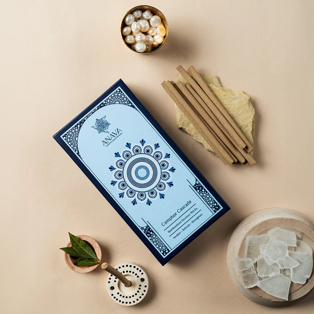 Invigorate your senses with Camphor Cascade Incense Sticks, crafted to awaken, refresh, and strengthen your environment with their crisp, clean fragrance.