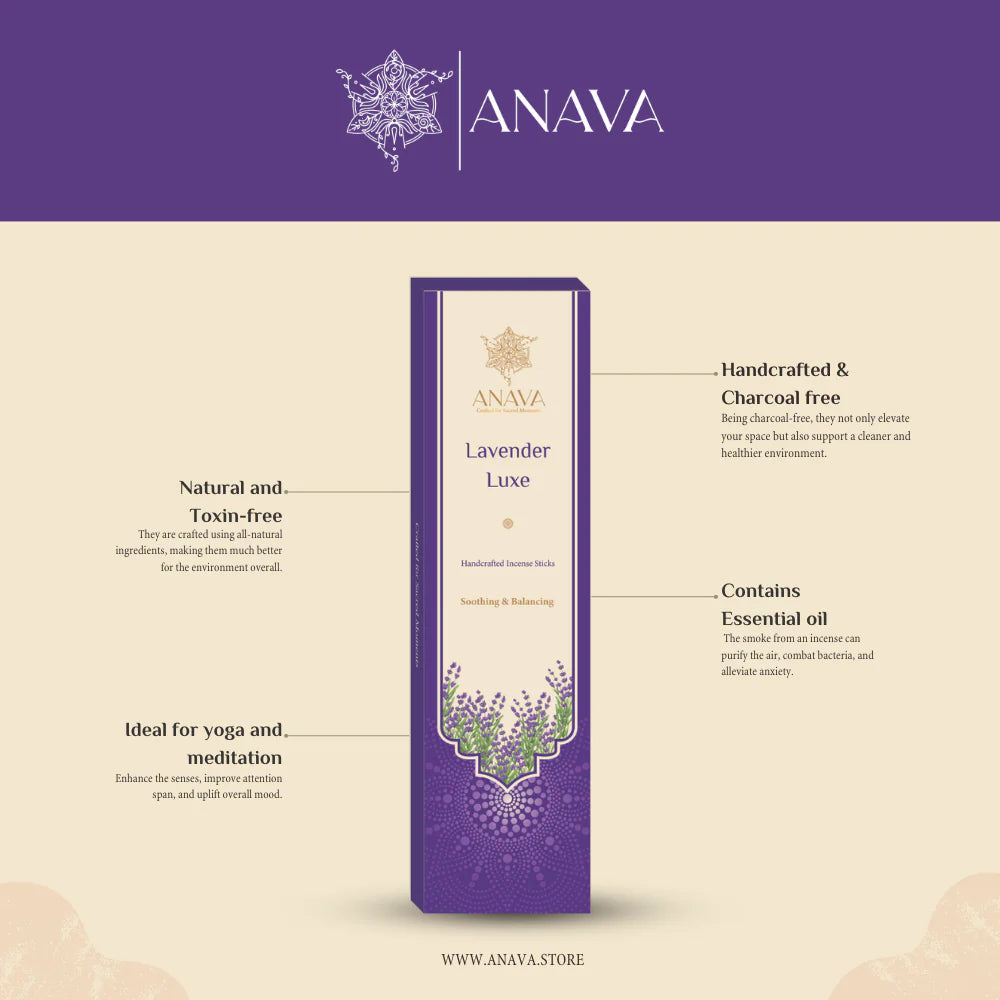 Enhance your daily rituals with Lavender Luxe Incense Sticks, and let the gentle scent of lavender elevate your spiritual journey and mindfulness practices.