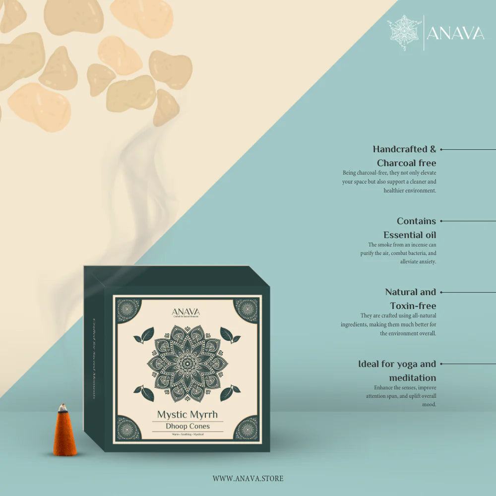 House of Anava Mystic Myrrh Dhoop Cones (Pack of 3)