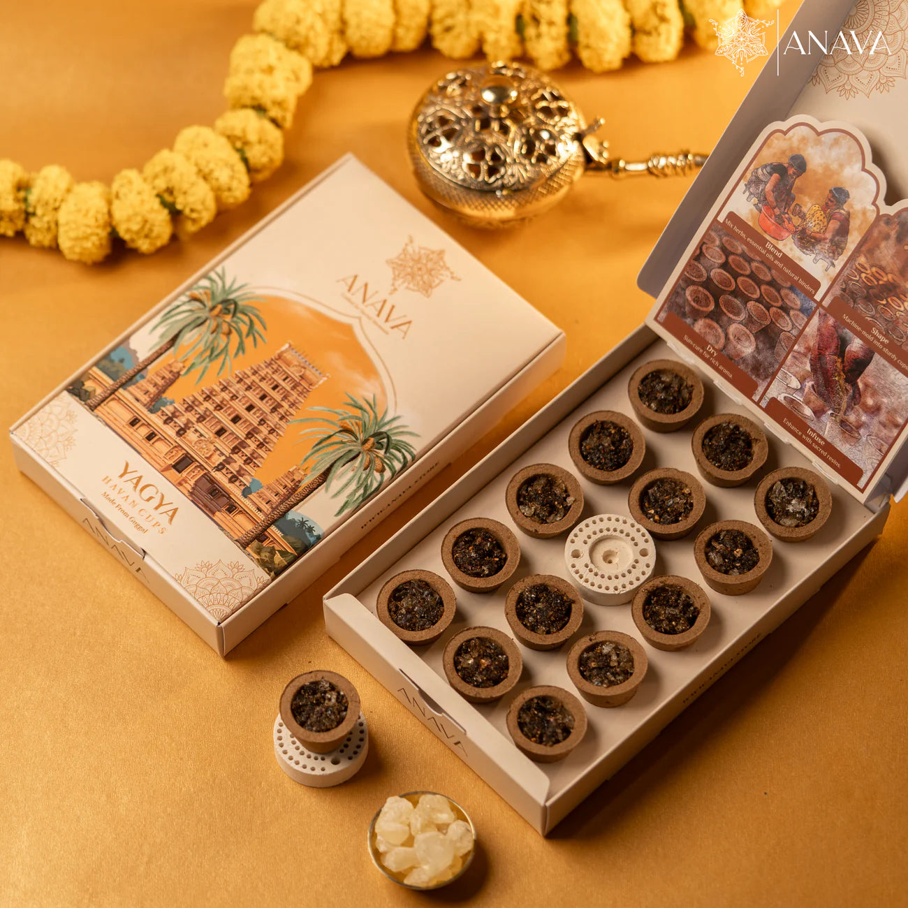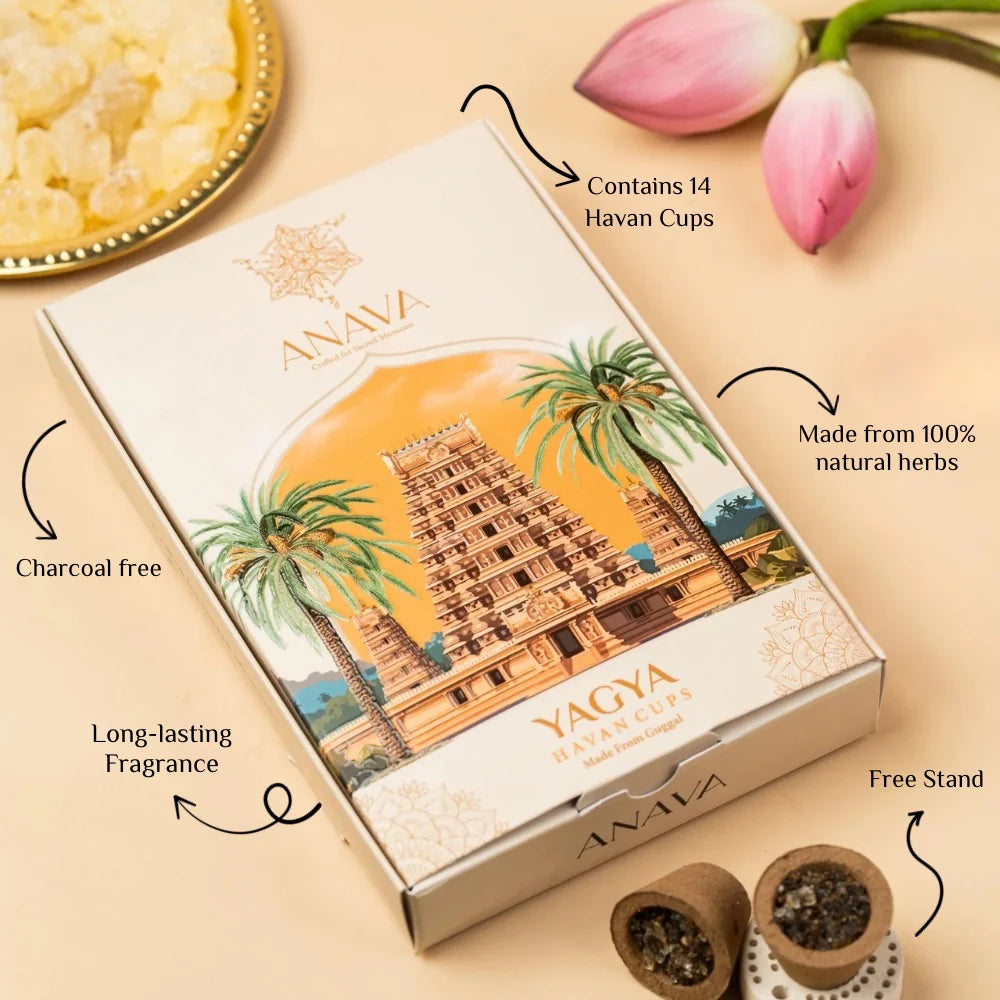 Uplift your-sacred ceremonies with Anava's-Yagya Havan Cups, made from Guggal extract for purification, devotion, and spiritual calmness.