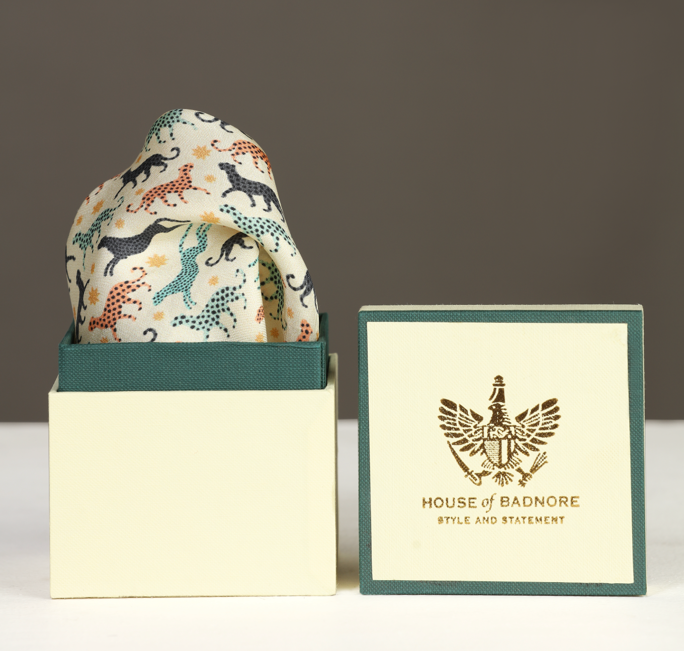 It's spot-on with style! The Cheetah Pocket Square takes a detour from the usual to allow a fresh zing of colours and sing a new song of elegance.