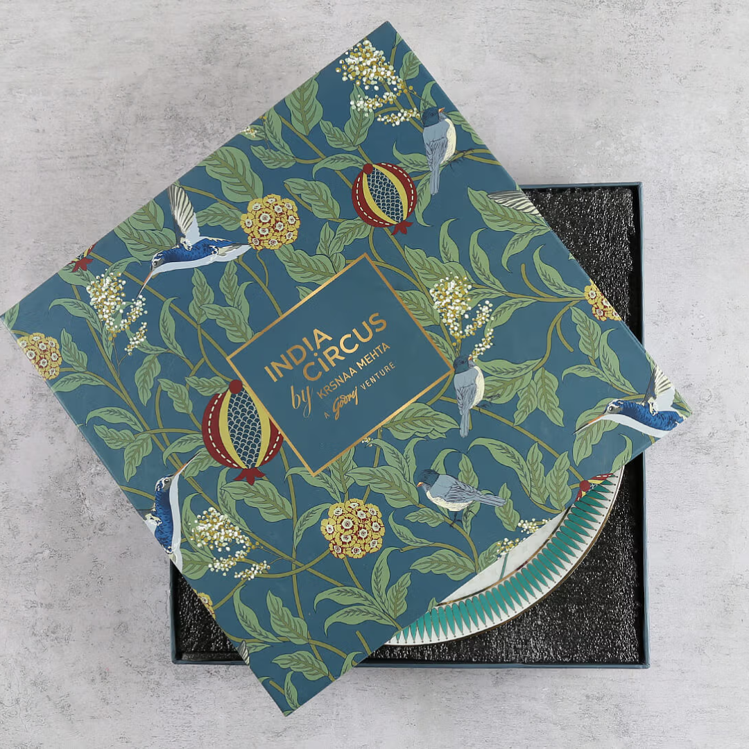 The Oceanic Opulence Dinner Plate Set of 2 by India Circus will make quite a proclamation at your table! These dinner plates are made of exquisite bone china and are suitable for formal or casual dining. This plate set is sure to be a conversation starter because of its vivid colors and detailed design. You may rest assured that your guests will be served nothing less than something stunning and luxurious, whether you're having a casual lunch with them or hosting a company. Bon Appetit!