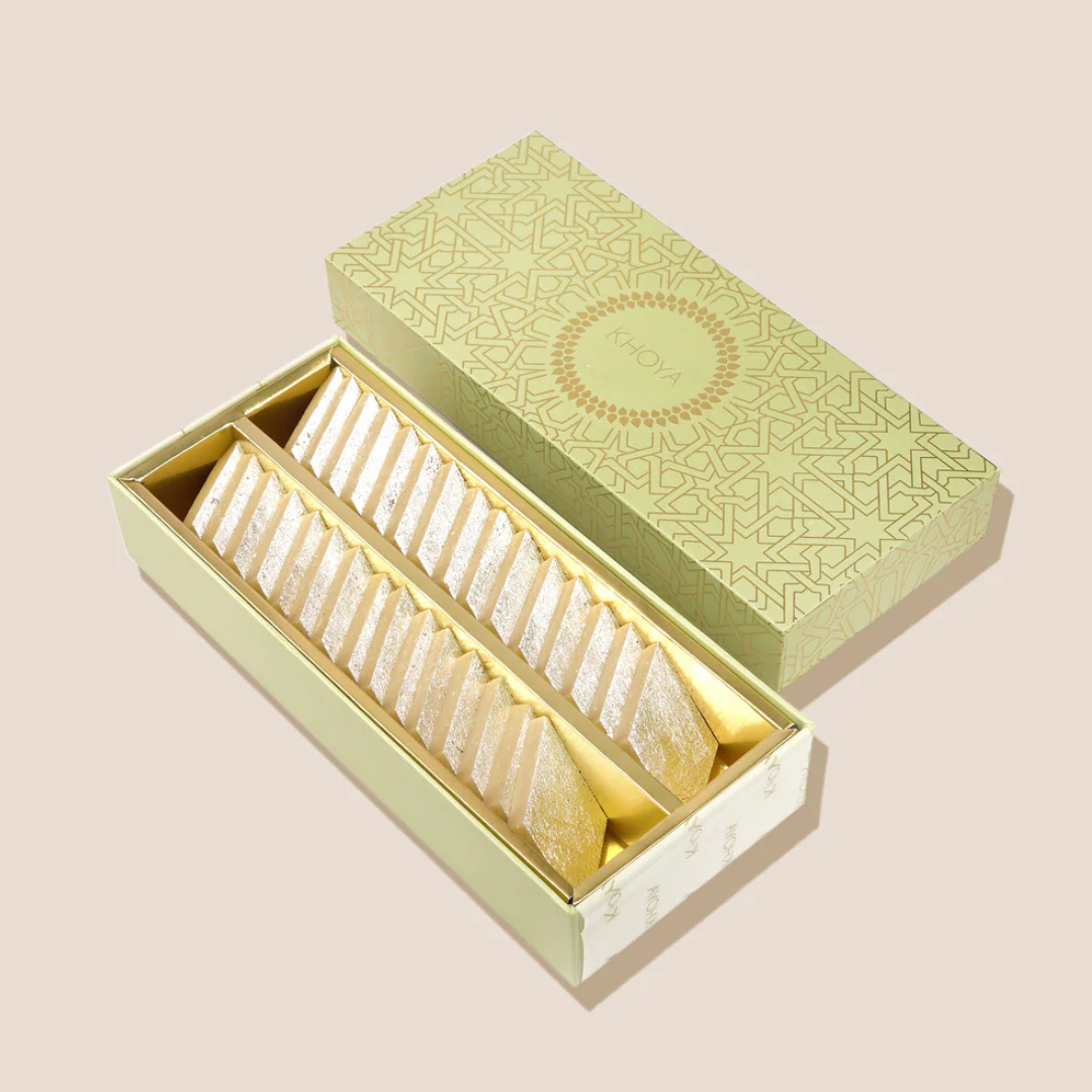 The Classic Kaju Katli is everyone's favourite! Send 30 pieces of Kaju Katli Box to your loved ones and make their day even sweeter! Made fresh. Hand rolled.