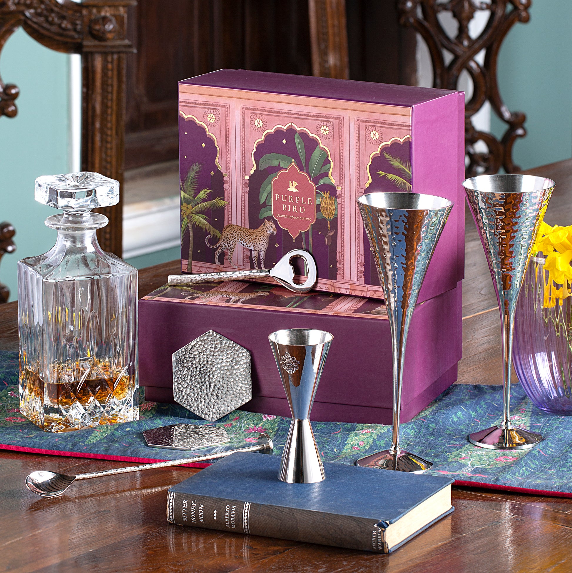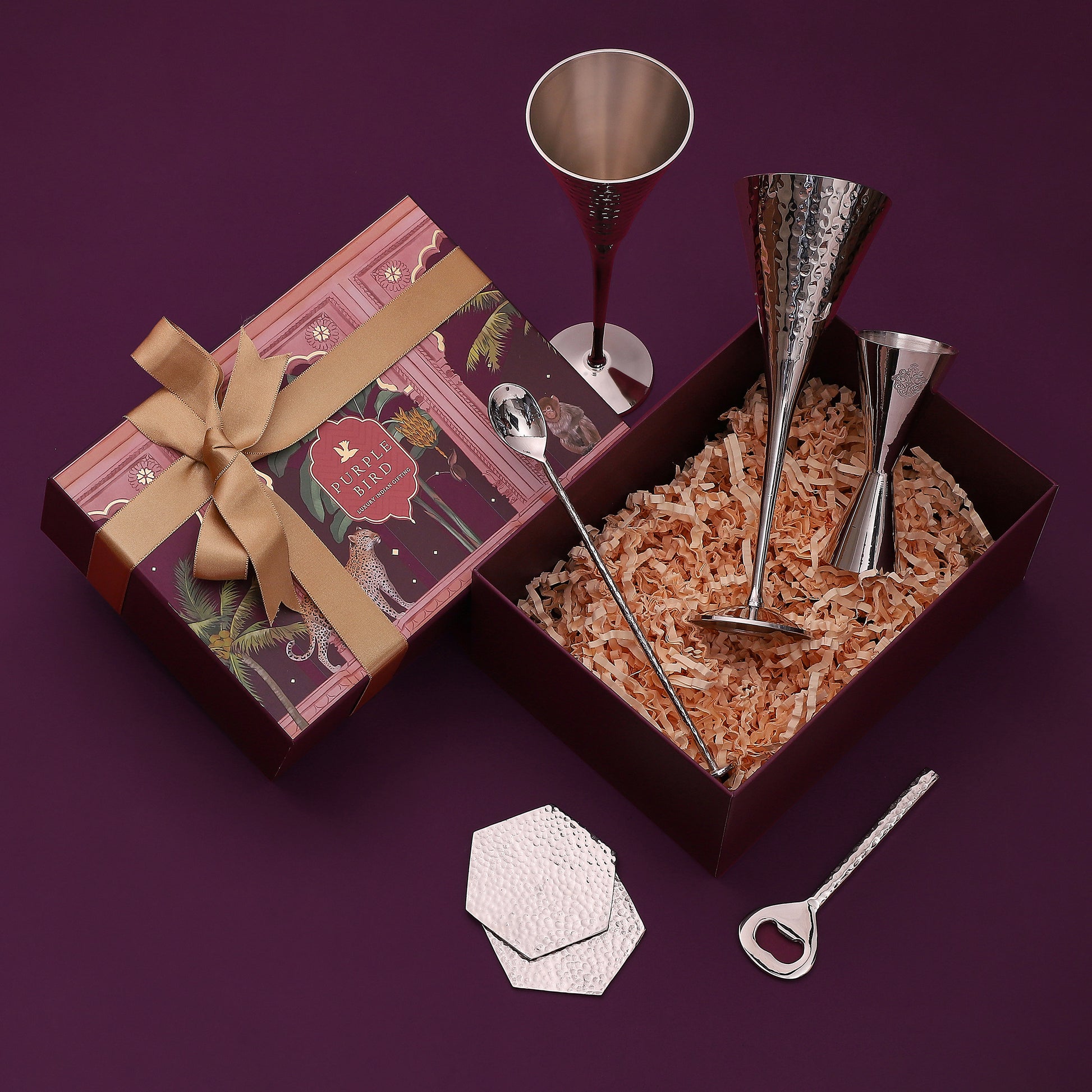 Celebrations in India are grand. No better way to make a grand gesture than with our Maanyata curation, which brings together the best of the 'Jashn' silver plated barware and accessories. Celebrate all milestones with the rather fancy silver plated cocktail glasses and rest them on two stylish silver plated coasters.Open bottles of choice, with the elegant silver plated bottle opener. Stir up cocktails or mocktails with the beautiful silver plated stirrer. Generously pour your ingredients in measured 30 or 60 ml with the dual silver plated peg measure. Tell them you see them, you acknowledge them, you recognize them and you celebrate them!