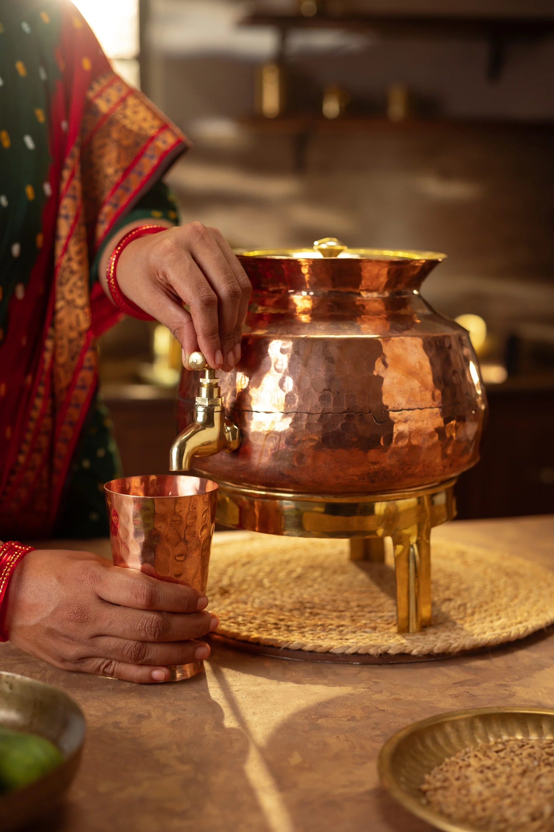 What you see looks beautiful & spells the excellence of Indian craftsmanship. The copper glass set with a hammered body makes for a beautiful gifting option. Drink consumed from copper glasses is a way of leading a healthy life. Also, the set has an expression of royalty. Make your gifting special with this exquisite combination.