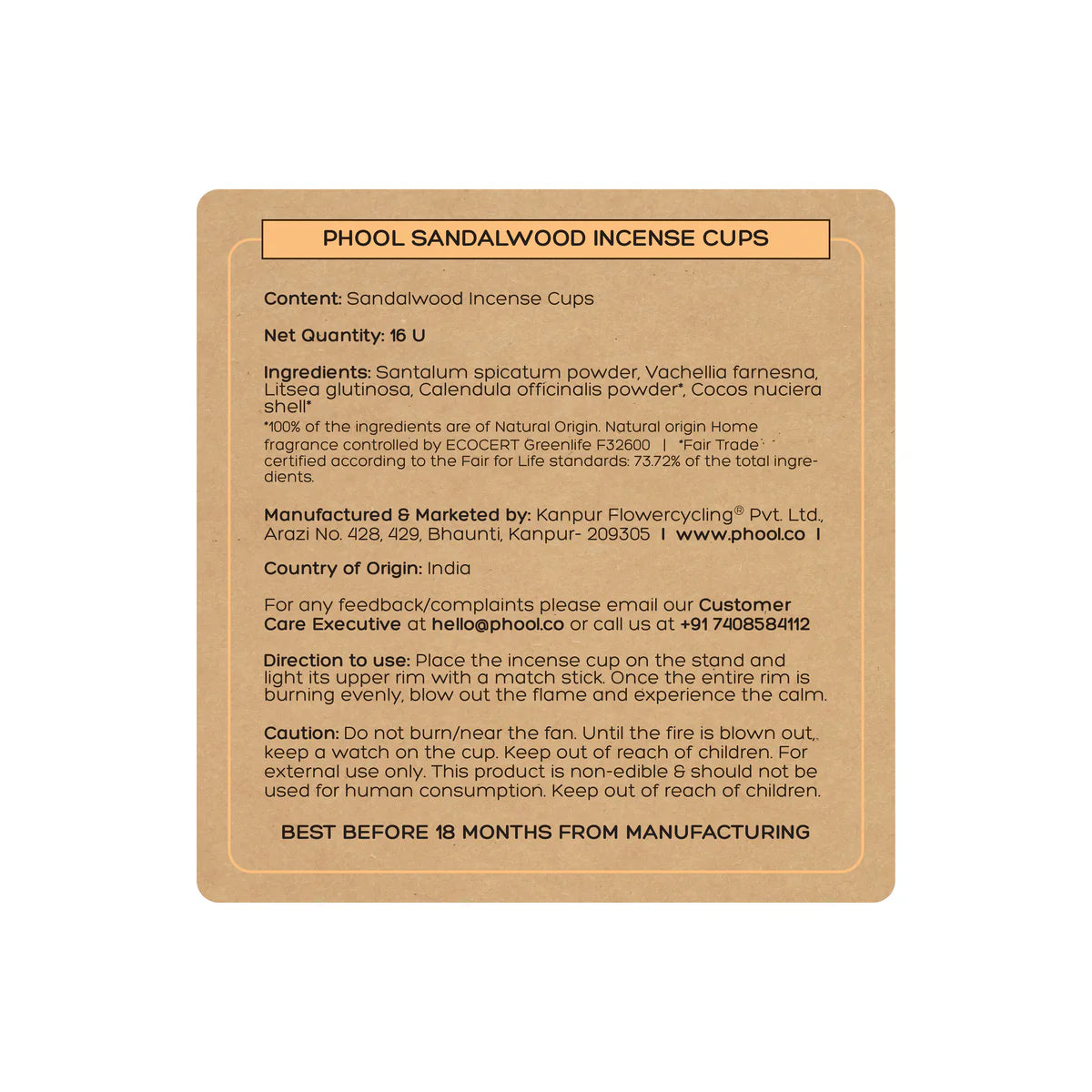 ❈ Unlike cheap sandalwood havan cups flooding the market that are mixed with synthetic oil and sawdust, Phool Sandalwood Havan cups are certified by Fairtrade Fair for Life standard and approved by Ecocert Greenlife Home Fragrance Standard.