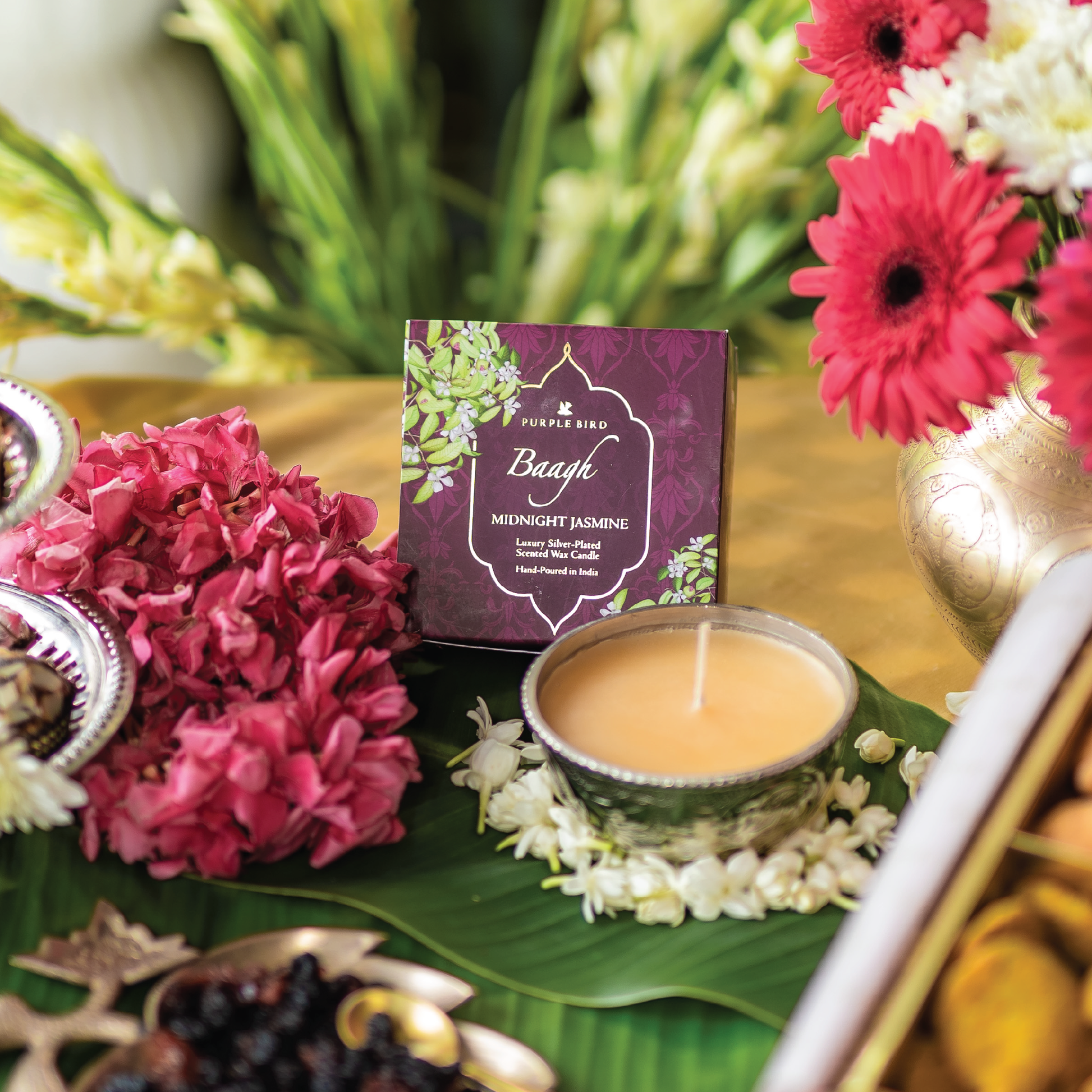 Purple Bird 'Baagh' Silver Plated Candle (Midnight Jasmine)