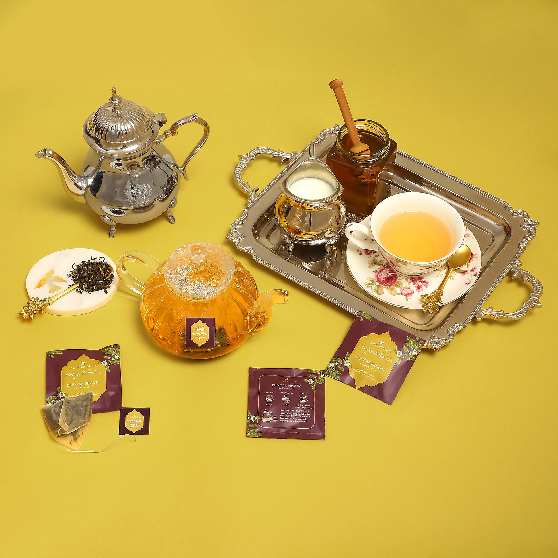 Purple Bird Teas: Purple Bird Heritage Indian Premium Teas, partners directly with farmers of the world-famous tea gardens of India. Hand-picked and blended to the highest quality and consistently good taste, Purple Bird Teas bring you the perfect ‘crop to cup’. Transported from the divine land of India, into your hands, with a warm serving of love.