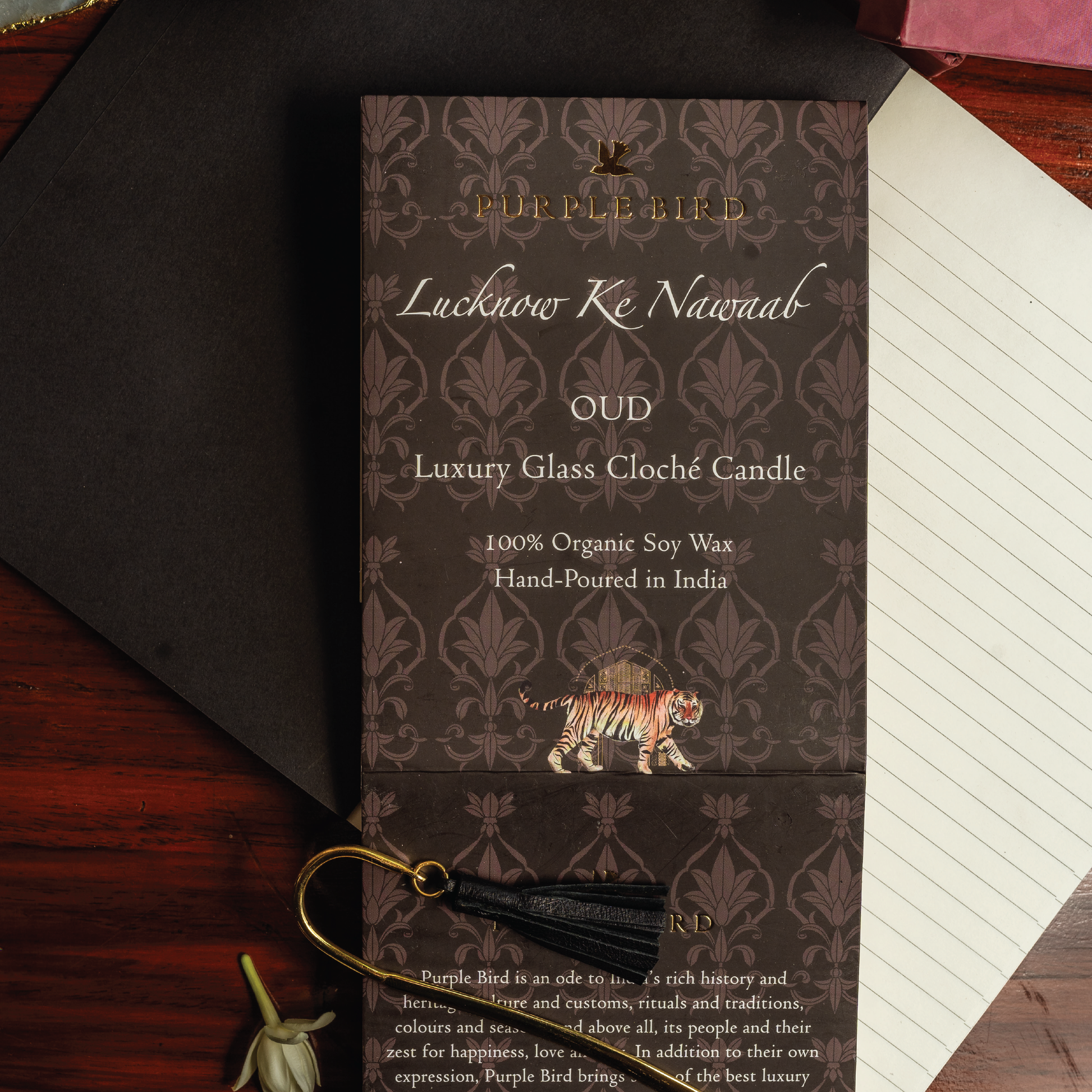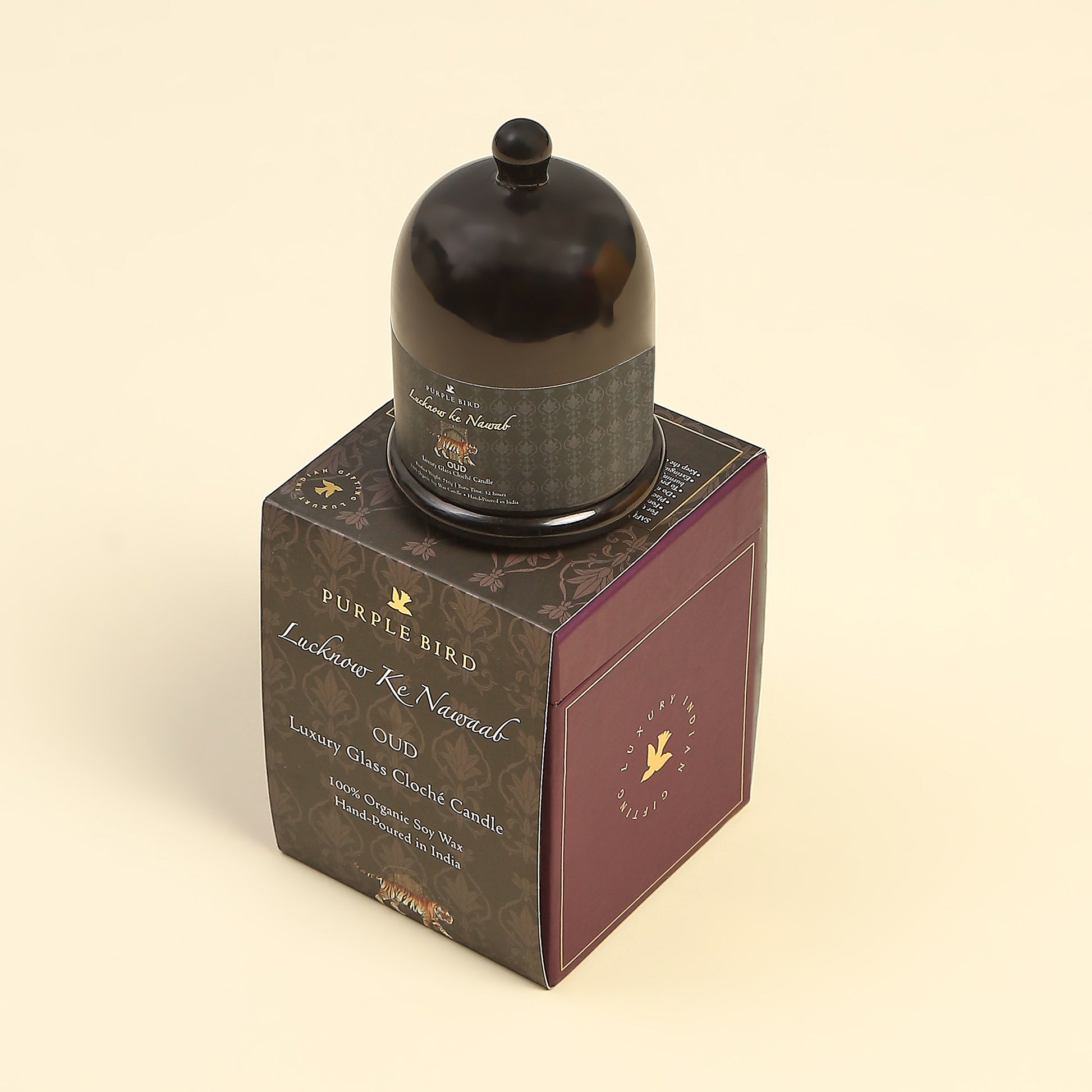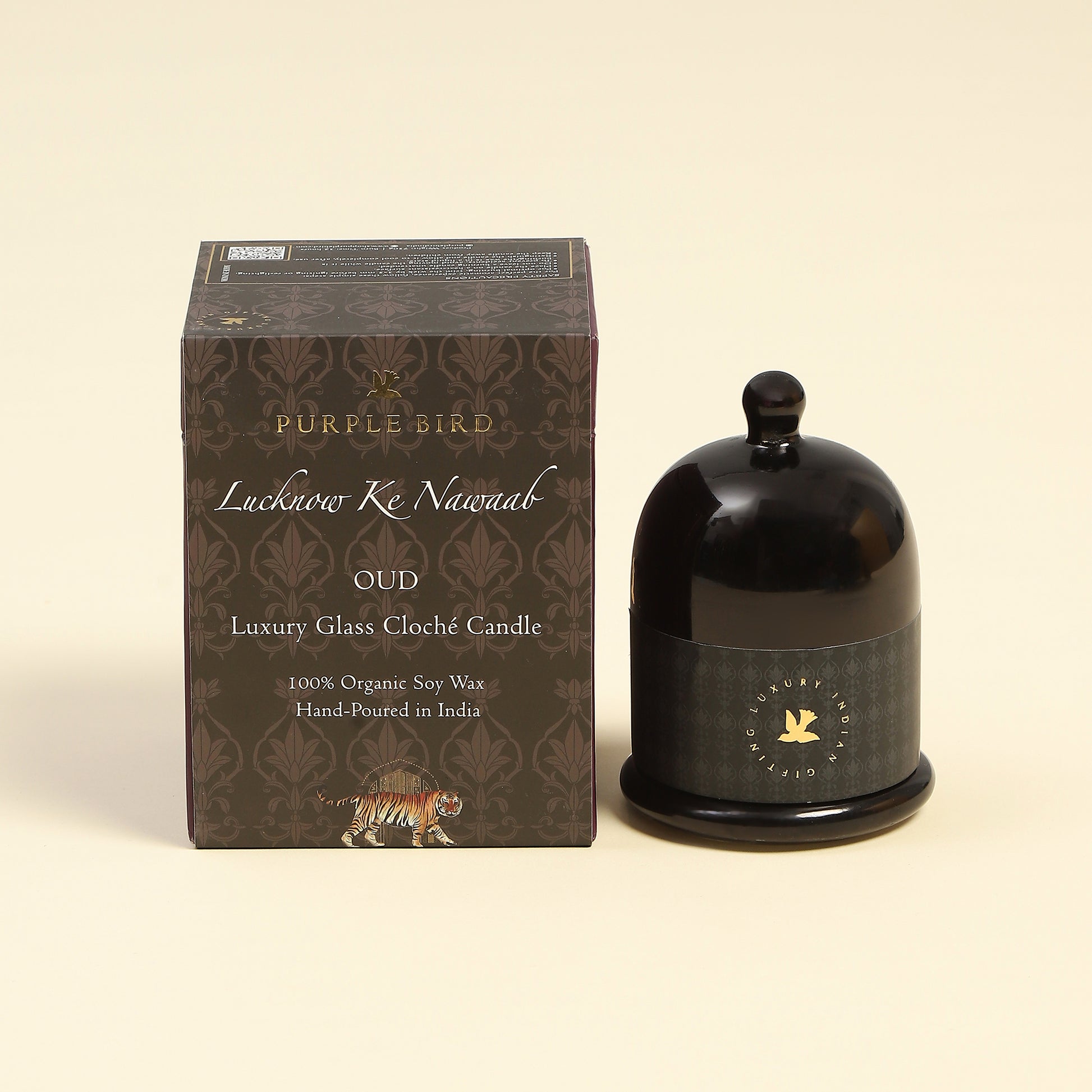 Purple Bird 'Lucknow Ke Nawaab' Luxury Glass Cloché Candle (Oud)