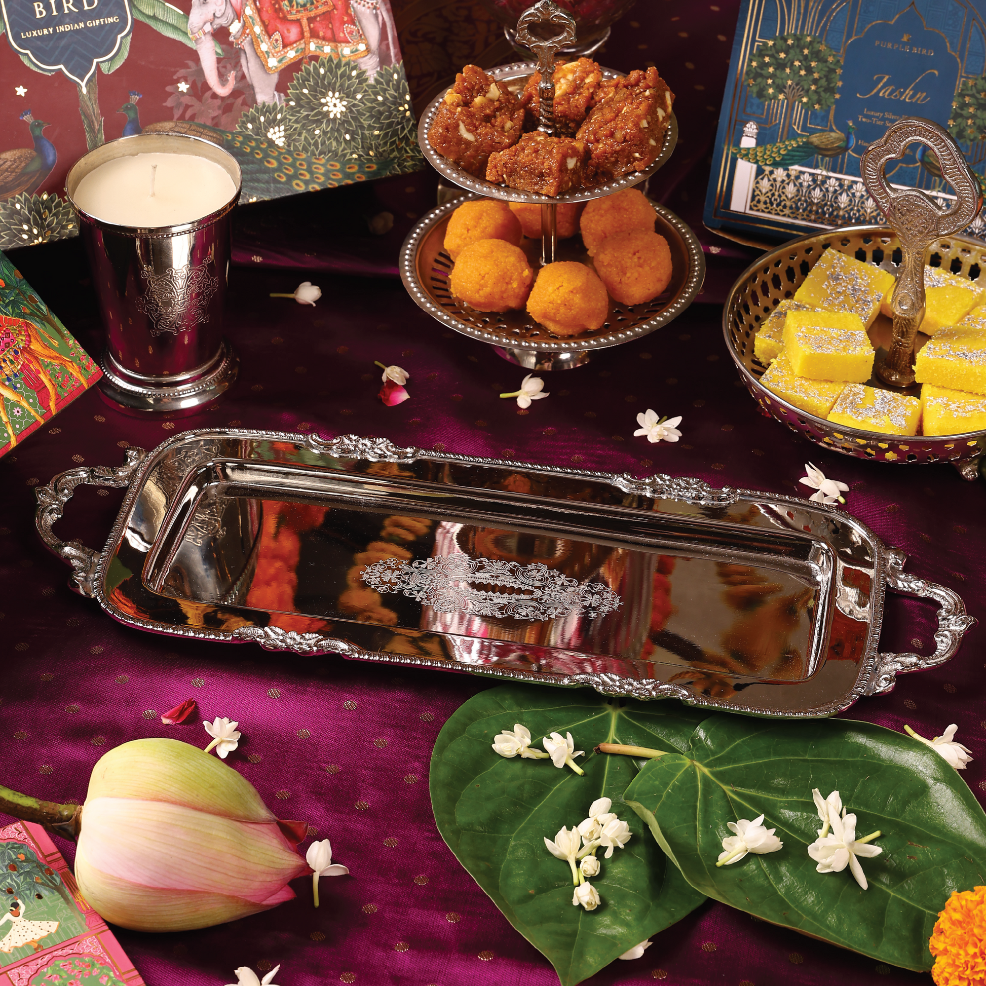 Purple Bird 'Shobha' Silver Plated Tray with Handles (Rectangle)
