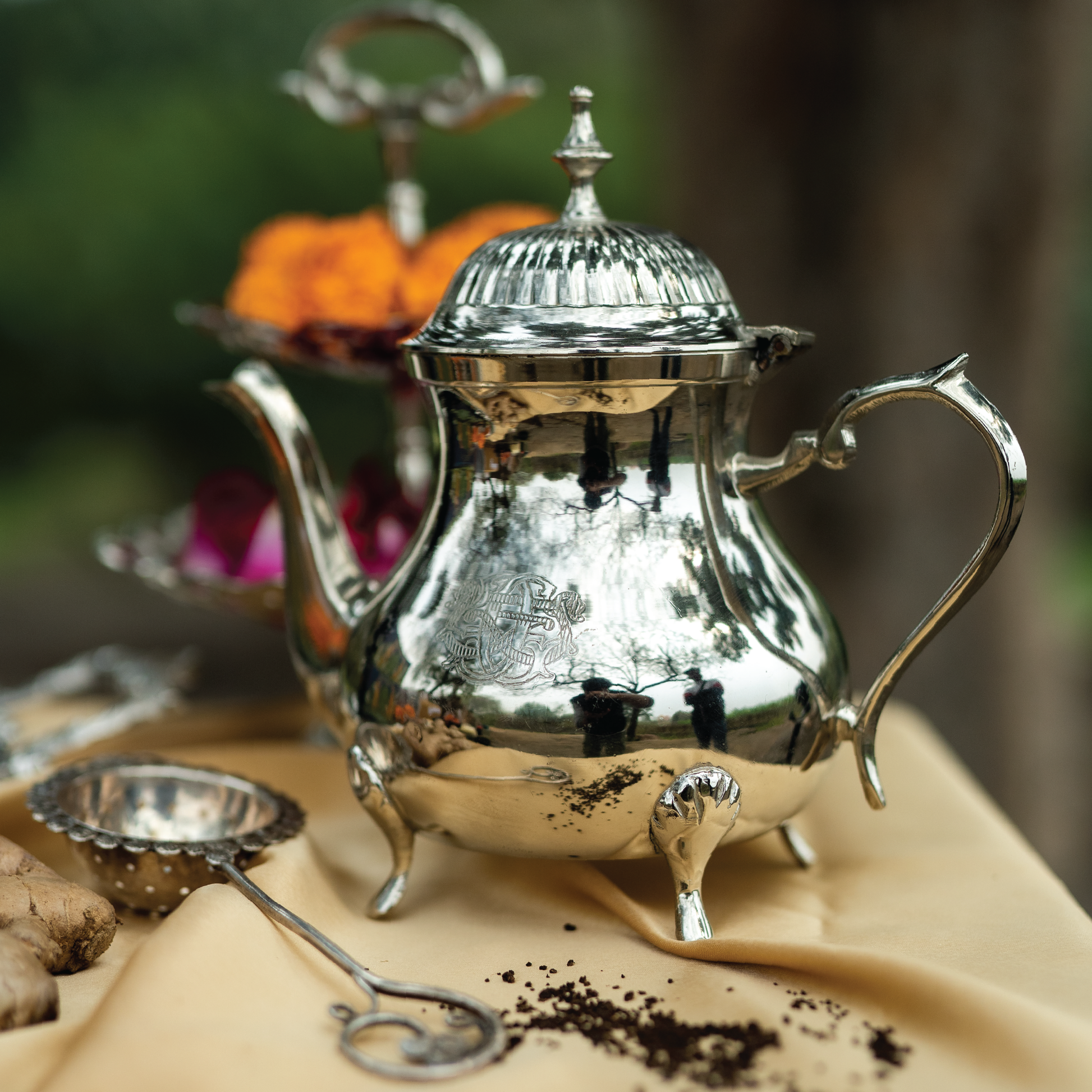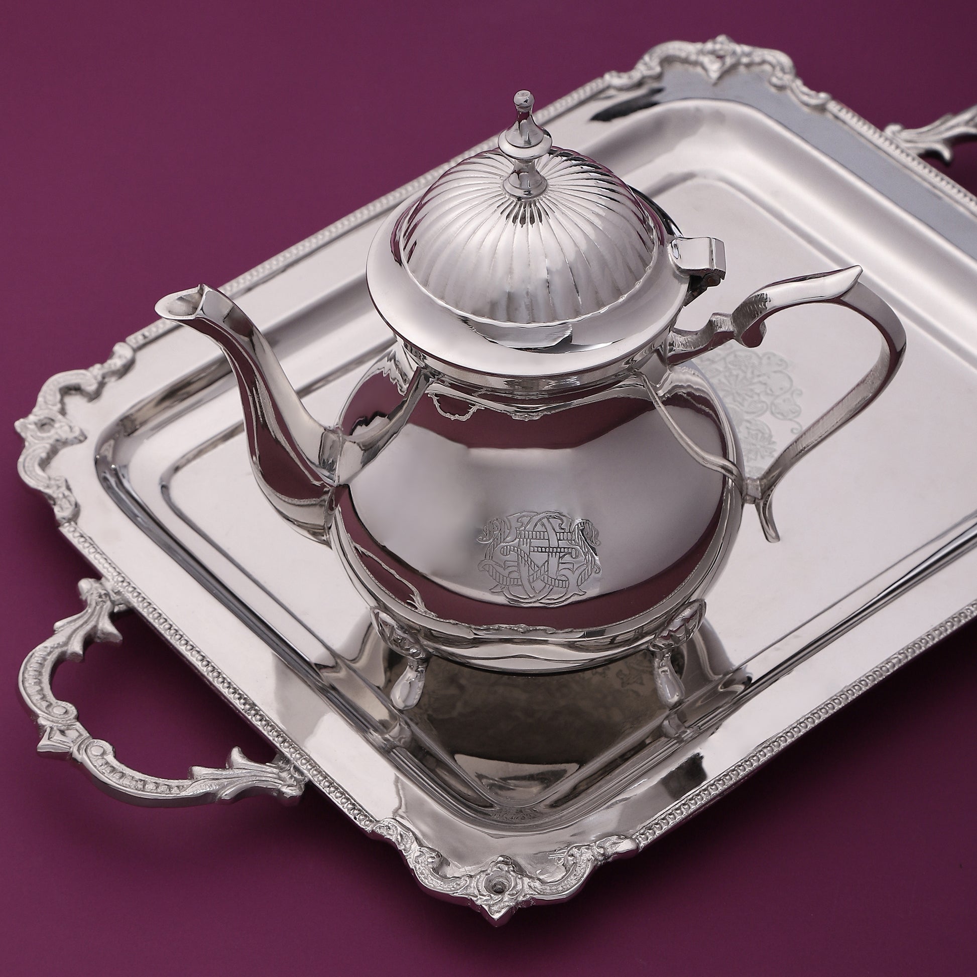 Elevate your tea rituals with the Purple Bird's Silver Plated 'Maharani' Tea Set. Crafted to perfection, this regal ensemble brings a touch of opulence to your tea experience. Immerse yourself in the intricate details of the Maharani design, delicately plated in silver for an extra layer of luxury. Let each sip be a royal indulgence, surrounded by the majestic charm of this exceptional tea set. Get transported to the old-world charm, with this heritage tea set comprising a tea kettle, milk server and sugar container.