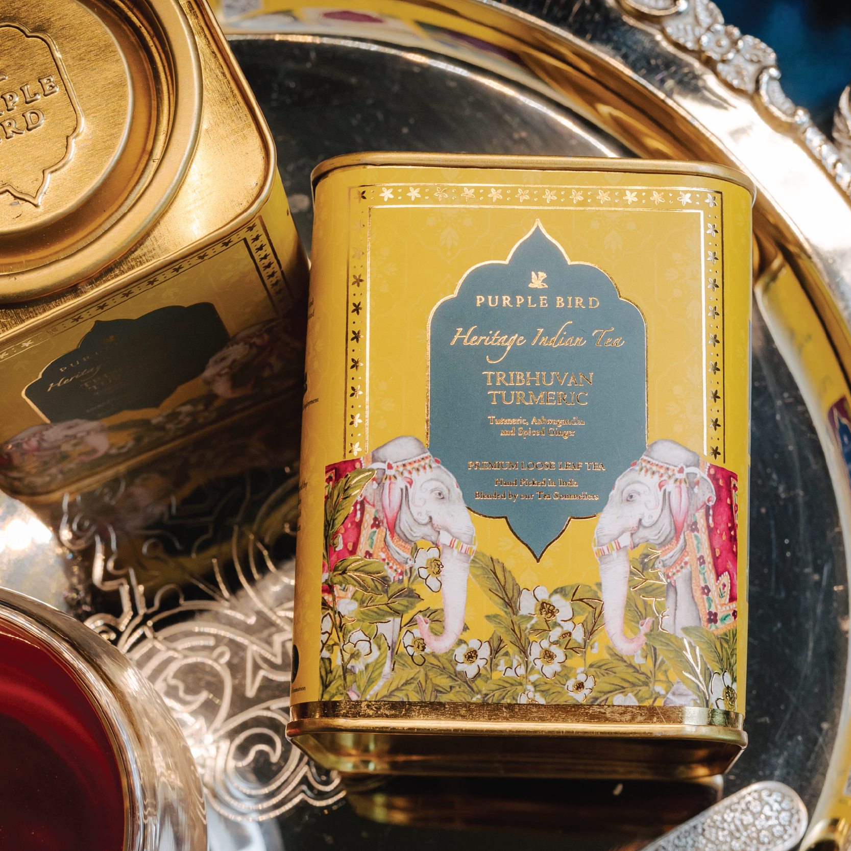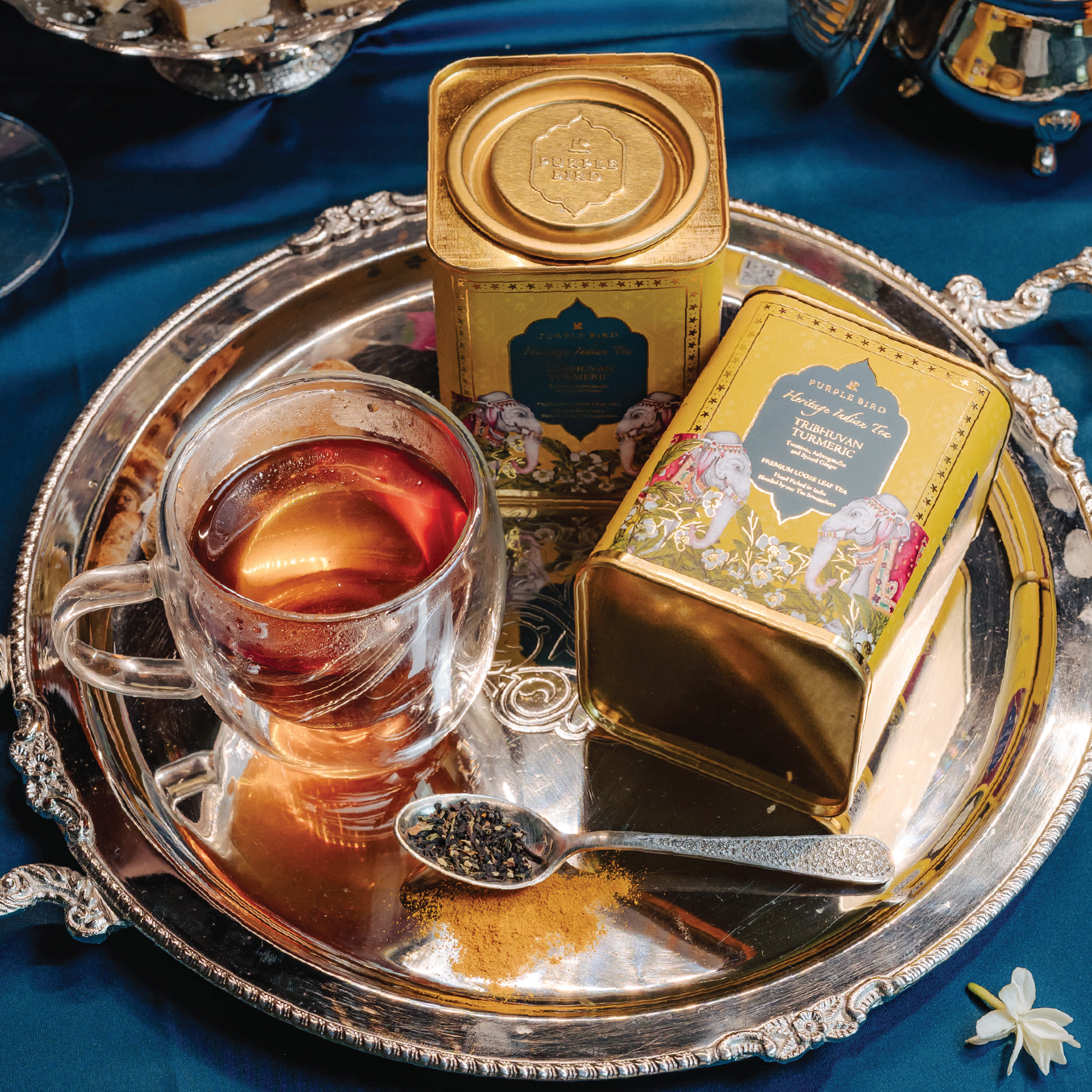 India’s crown superfood, Golden Indian Turmeric (known as Haldi), accompanied by an army of rich Indian spices including heated ginger and ashwagandha, makes Tribhuvan Turmeric a well-balanced, nutrient-rich, immunity-boosting tea with several health benefits. A hint of mint adds a refreshing, cooling aftertaste that lingers gently. Tribhuvan Turmeric is a must-add to your daily rituals.
