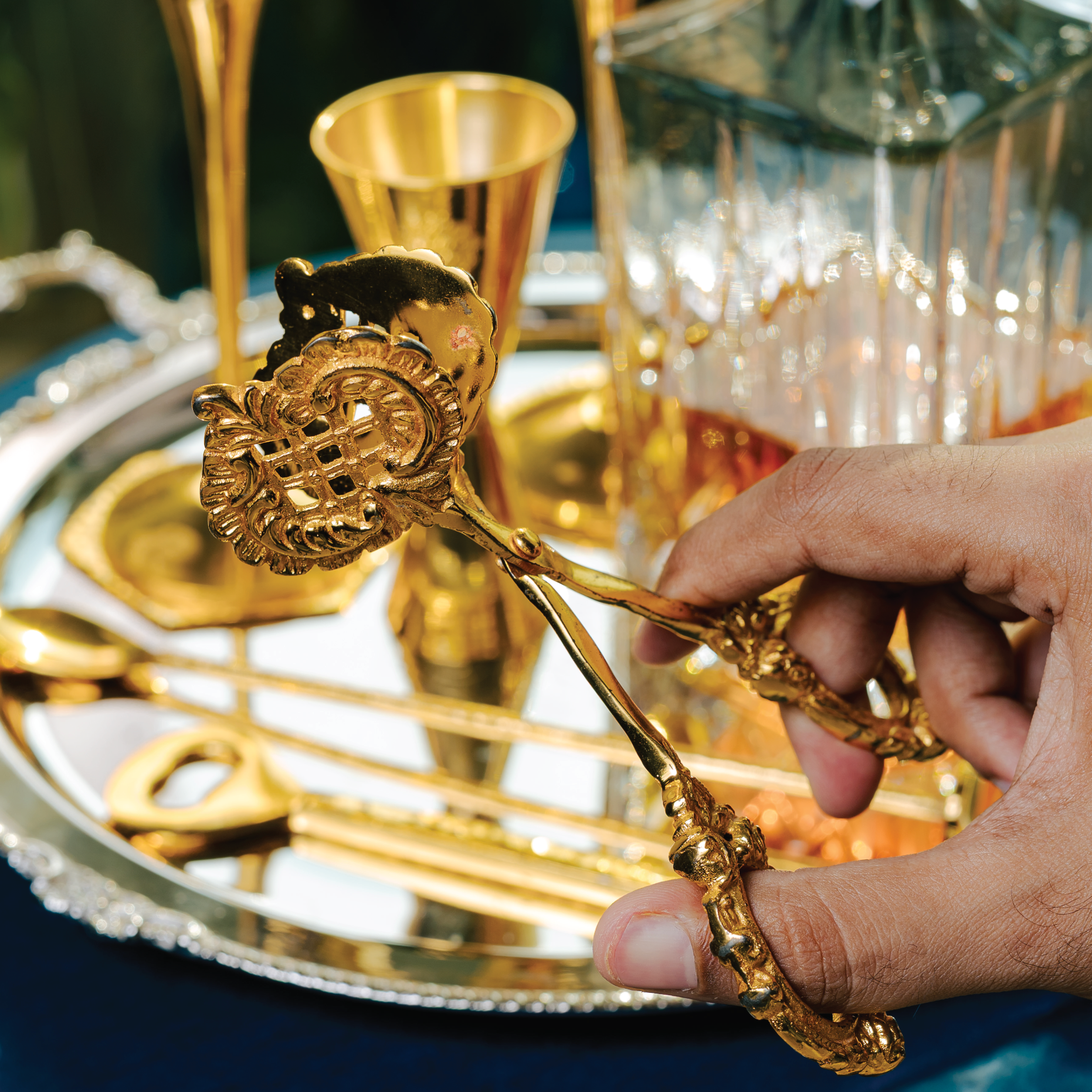 Serve your appetizers or dessert in style with the 'Jashn' Gold plated tongs that have been crafted from food safe metal, featuring an intricately handmade, elegant gold beaten pattern that will pair seamlessly with any table setting. Thanks to the easy-to-wipe material, this tong makes for a practical addition to your home.
