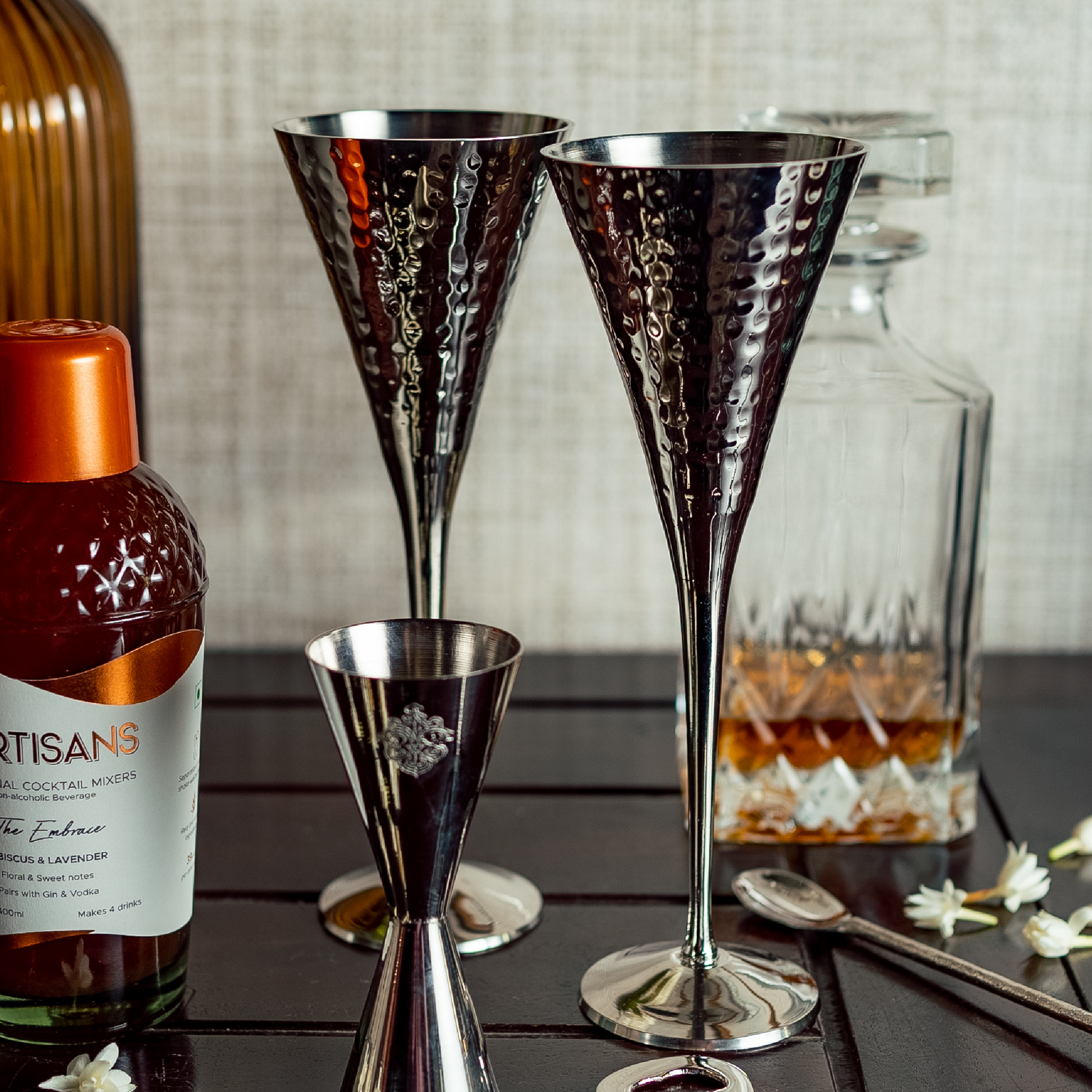 When you’re hosting a group, marking the occasion with refreshing drinks (both cocktails and mocktails) in elegant silver plated toasting flutes is a sure way to impress, while keeping your mixologist duties to a minimum. Starting with an elegant stem that leads to the angular, delicate bowl, the pair is ideal for celebrating the most special occasions.
