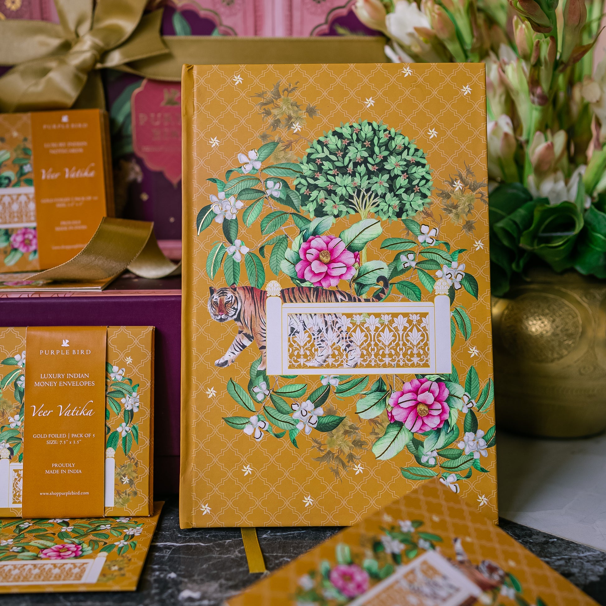 Unleash the Majesty: Within the sacred pages of this Veer Vatika notebook, embark on a journey through the lush realms of a regal palace gardens. Let each stroke of your pen be a tribute to the untamed elegance of these majestic creatures. Document your thoughts and adventures in the company of the jungle's sovereign. A notebook fit for capturing your own royal tales.