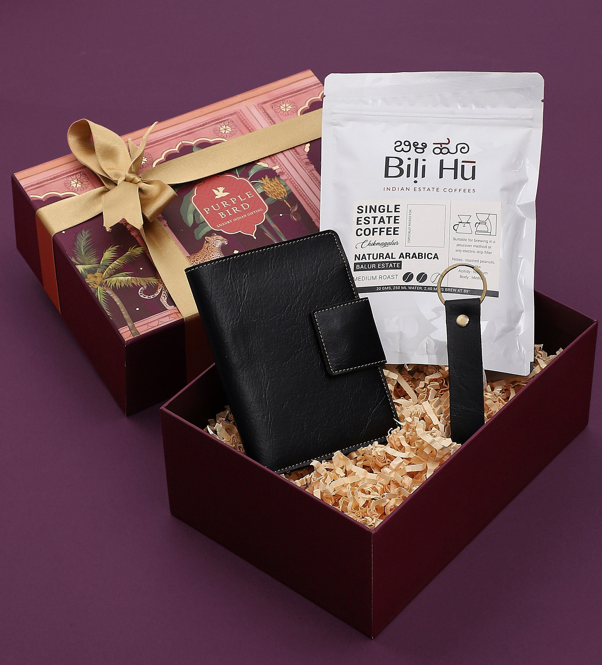 We believe that there is immense potential in all of us to succeed, and that potential, may look different for each of us too. However, the journey to realize your optimal potential requires many ingredients including hard work, blessings, discipline, willingess to adapt and above all, consistency. The Sambhav curation includes the natural medium roast Arabica coffee, for specialty coffee lovers who don't function without coffee in their morning routine. The vegan leather key chain brings organization to house, office, car keys and other key attachments. The synthetic leather compact travel case is an ideal companion to keep important documents such as your passport, ID card, boarding passes etc. handy and organized. Dream big and it shall be possible! Here's to becoming the best that one can be.