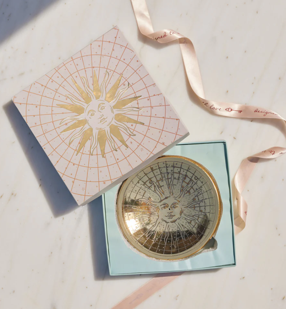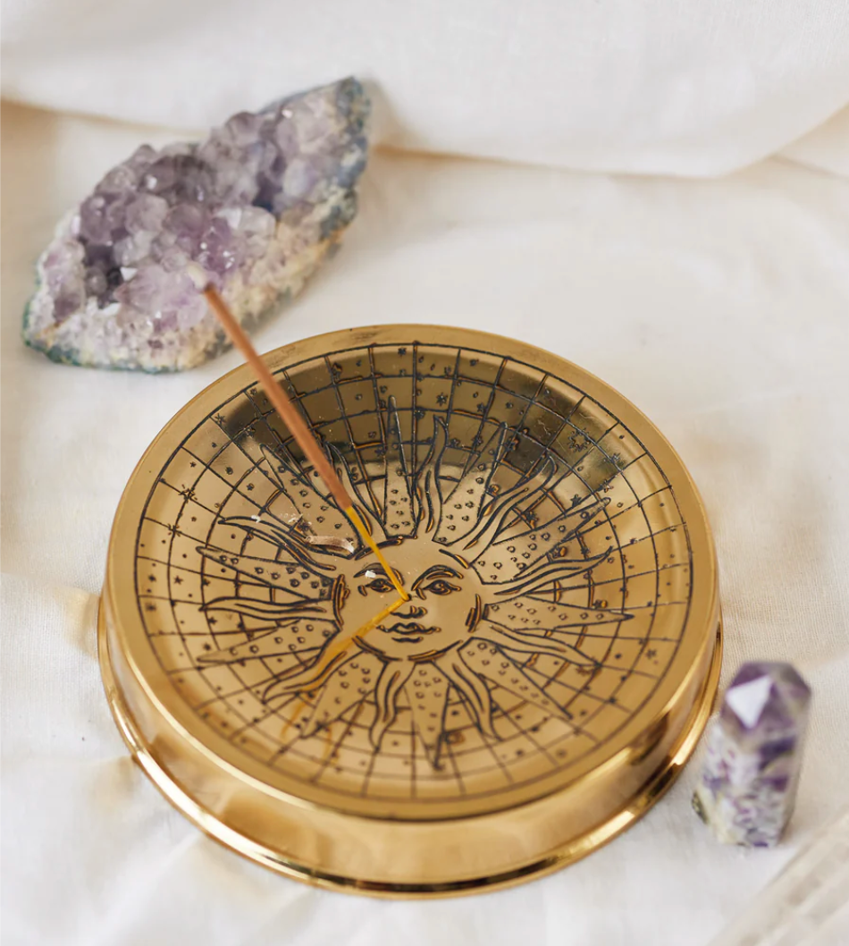 The rising sun, we call Sol is an alluring incense holder or objet d' art that signifies beauty and being present. The Over the Moon, Under the Sun collection invites you to nourish and nurture yourself in sacred, quiet spaces you call your own. Handcrafted from pure brass with fine etching.