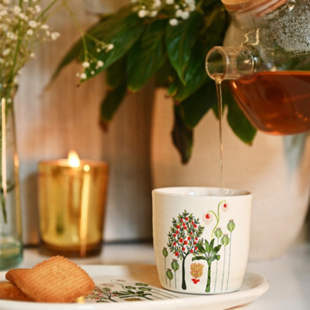 Delight in hand-decorated crockery paired with your favorite tea. Inspired by the beauty of spring and the romance of blooming gardens, the Bagh Cups set creates the perfect ambiance for cherished moments.